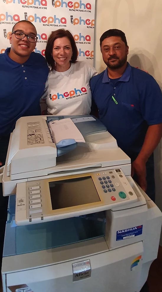 Nashua Winelands generously sponsored a printer/ scanner/ copier machine to the Iphepha for Pupils office. On the picture is from left to right: Brentin Sevan (Nashua Winelands), Aletta van Helsdingen (Iphepha for Pupils) and Craig Ramjee (Nashua Winelands)